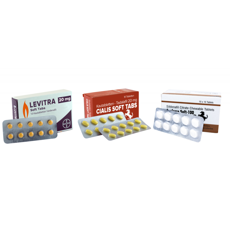 Testpaket L: Viagra, Cialis & Levitra Soft Tabs (je 20 Stück) | - | 214,99€ 194,99€ | |